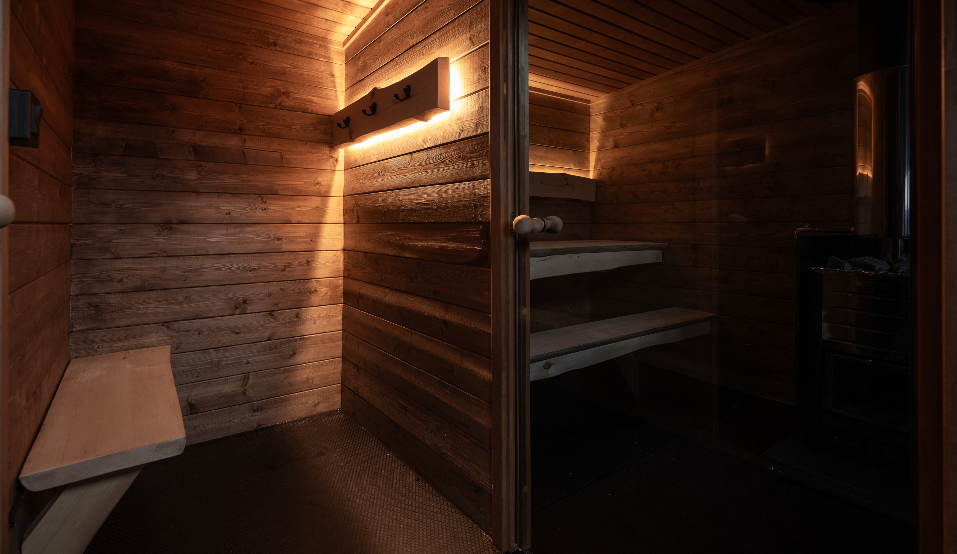 Saunassa on tuloilmaventtiili kiukaan vieressä ja säädettävä seinäluukku, jotka takaavat raikkaan ilman saunojille.